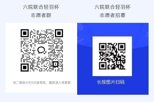 请扫描下方二维码进入咨询群,获取报名问卷及后续通知。报名问卷将于4月5日12:00正式开放,请有意参赛的同学按时填写。报名成功后,工作人员将根据项目情况进一步通知并建立正式参赛群。组队形式为师生自由组队,可跨院系组队,每人最多报名两项。单打项目原则上每项上限32支,双打项目原则上每项上限16支。